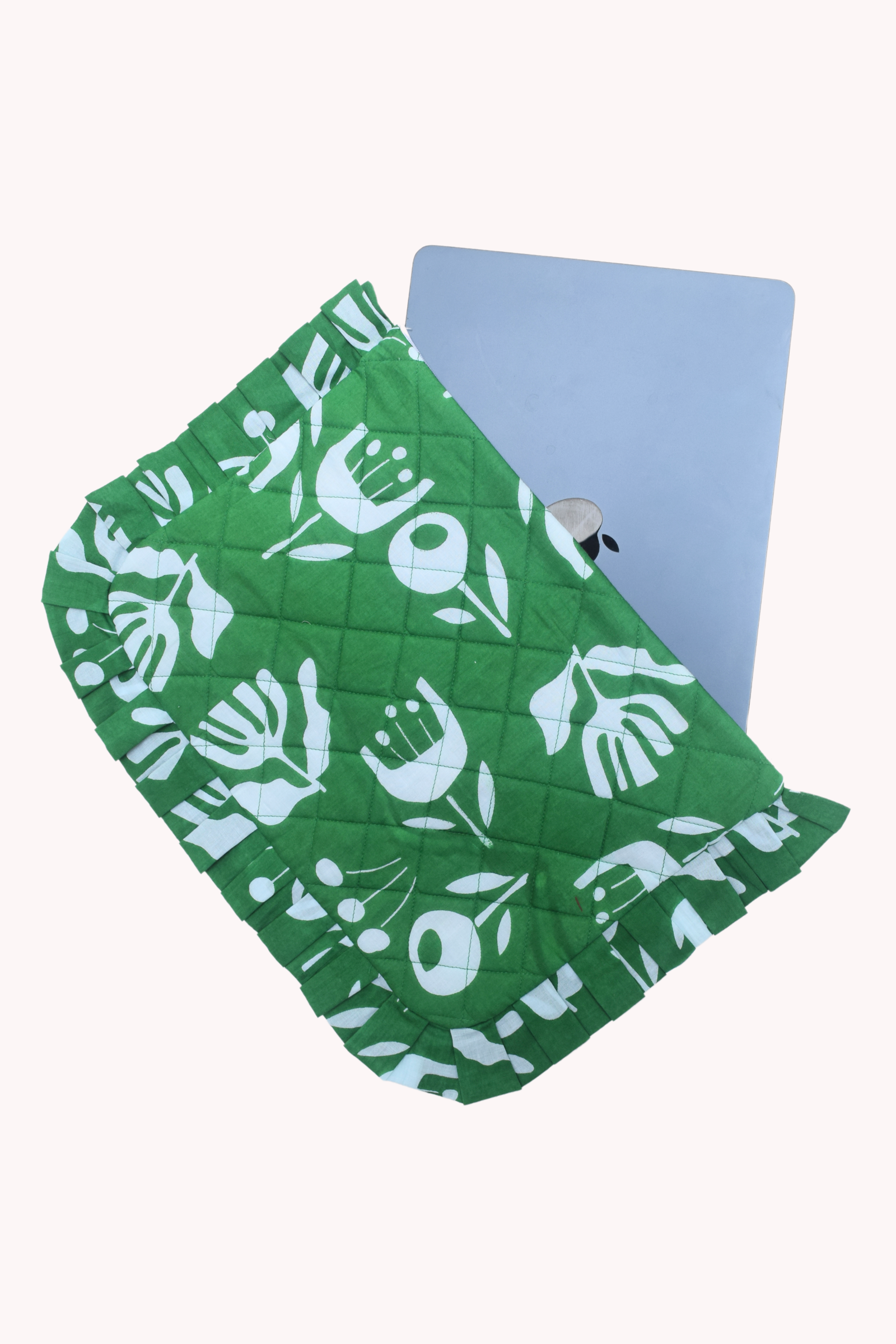 Step up your laptop game with the Agua Fresca Laptop Sleeve! Part of our zero waste collection, this sleeve is crafted with quilted front and back and features frills for added cuteness. Don't worry about losing your laptop, the concealed chain closure has got you covered. Join our wonderland and do your part for the environment in style!