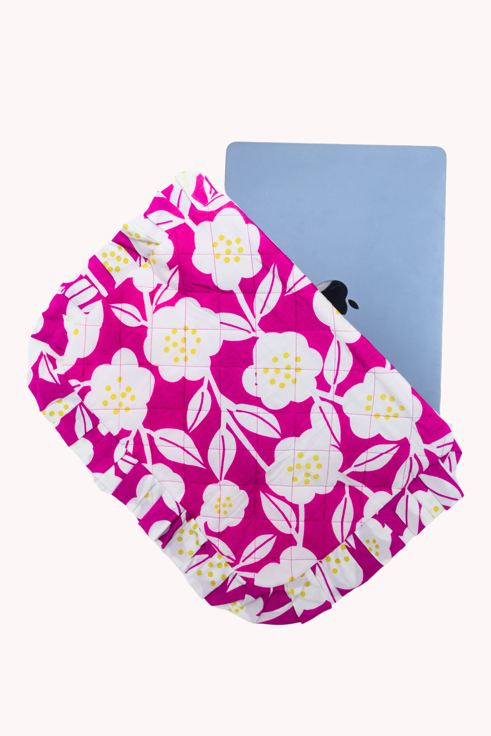 Step up your laptop game with the Alisha Laptop Sleeve! Part of our zero waste collection, this sleeve is crafted with quilted front and back and features frills for added cuteness. Don't worry about losing your laptop, the concealed chain closure has got you covered. Join our wonderland and do your part for the environment in style!