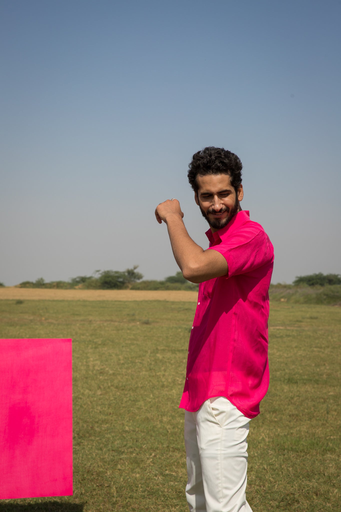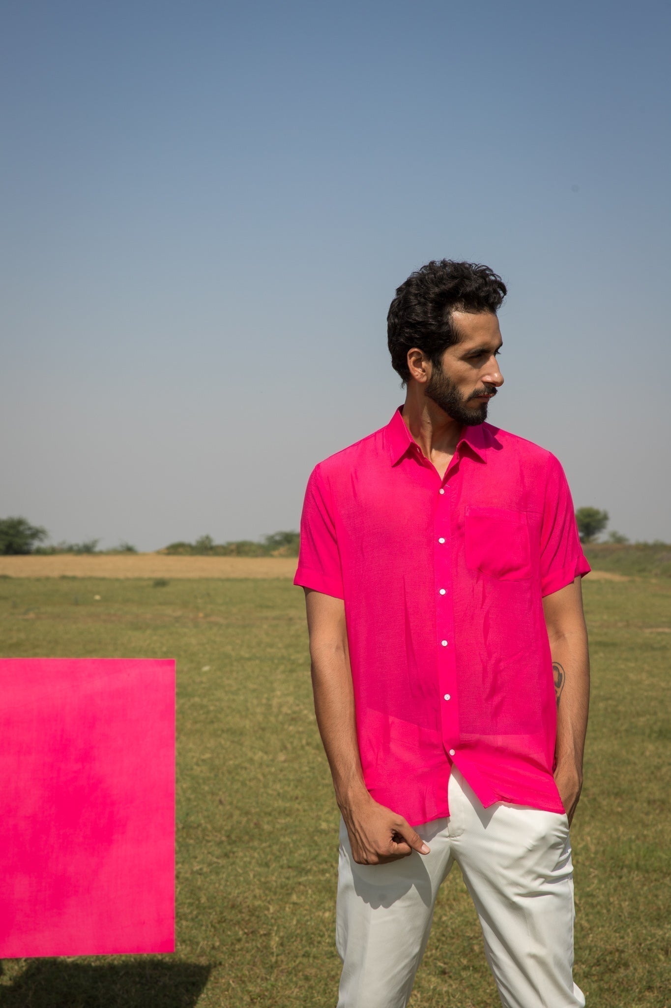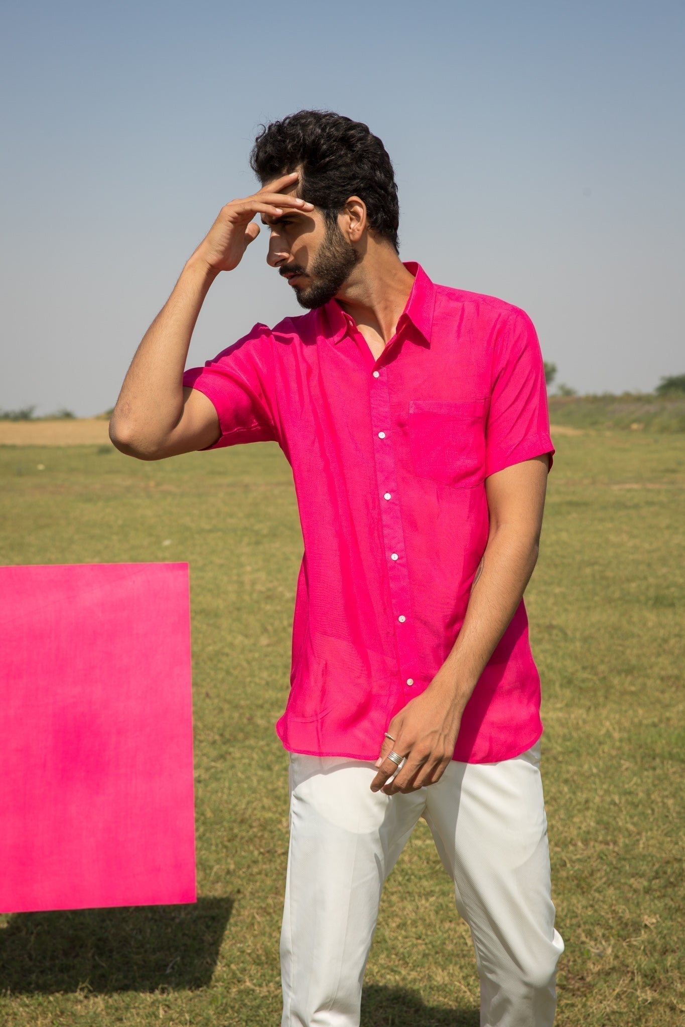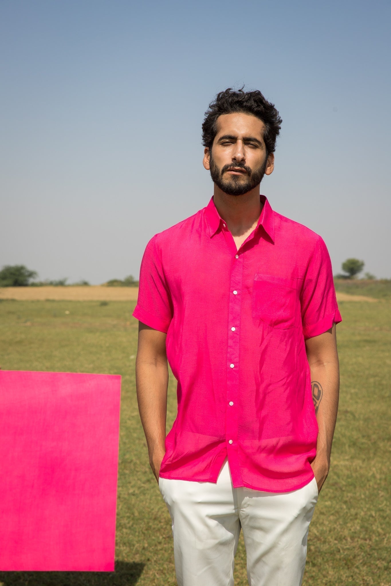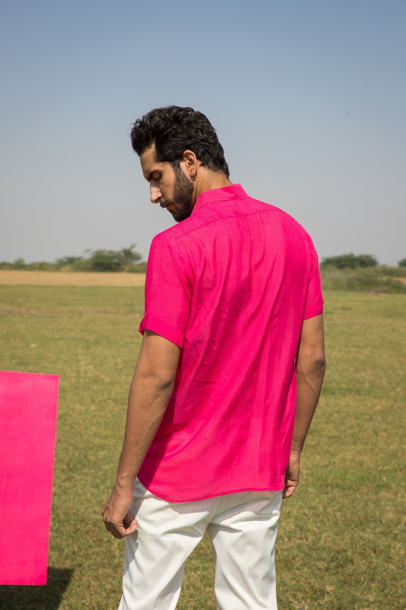 this shirt is crafted in the hue of pink on muslin silk.?ÿ
