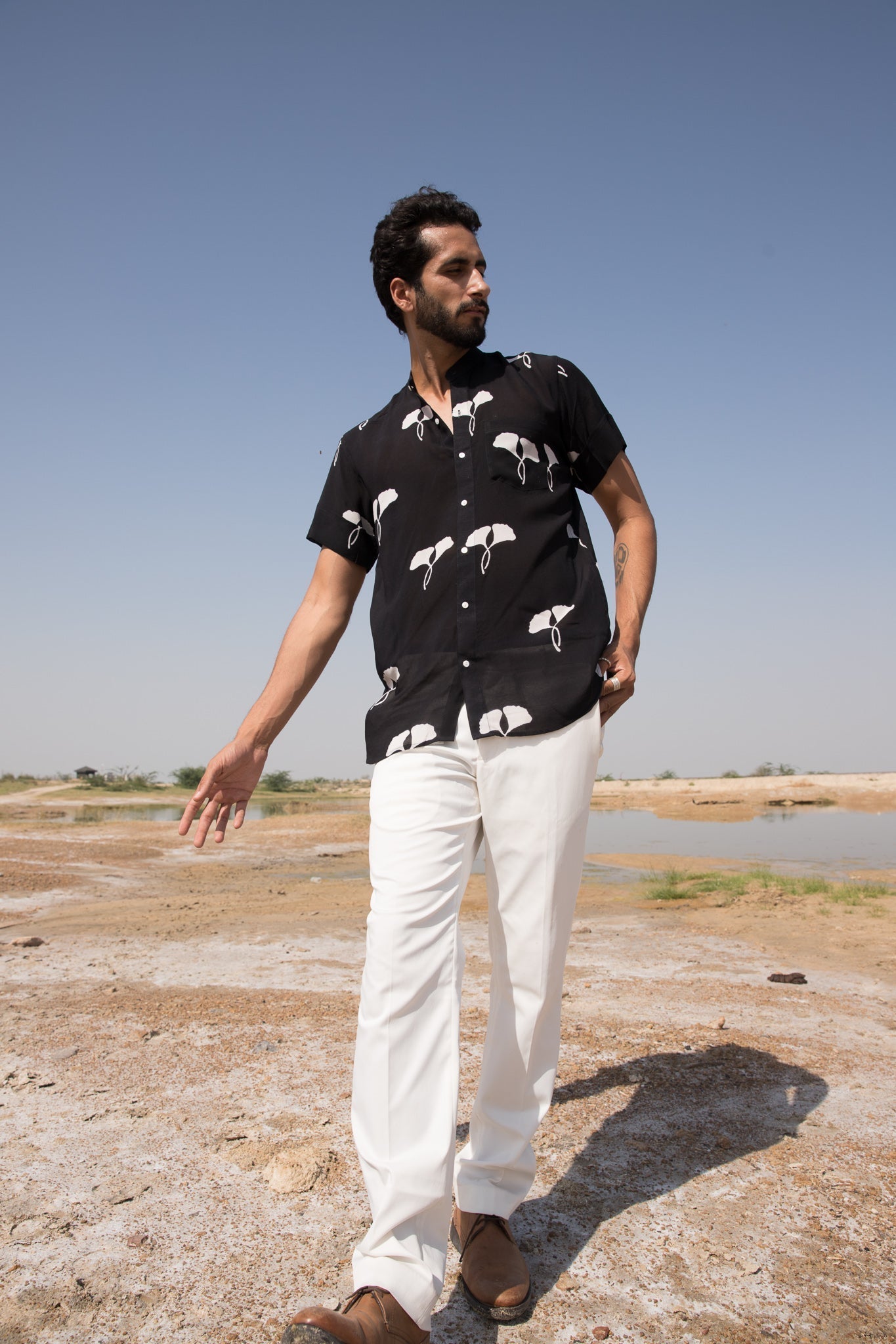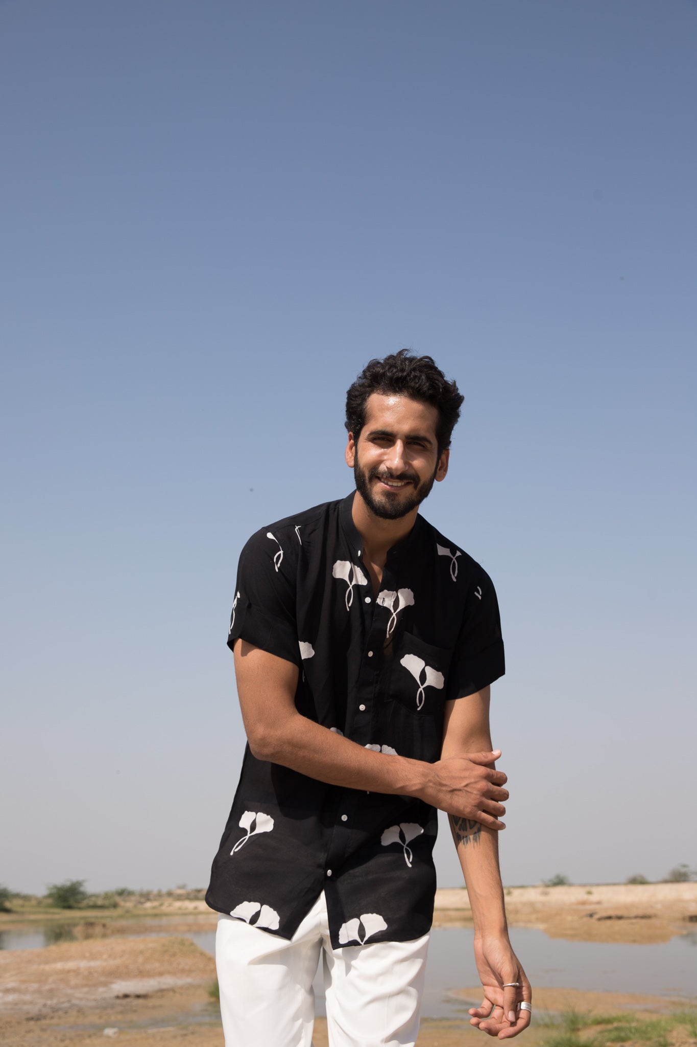 this shirt is crafted in muslin silk hand block printed in our exclusive print featuring hue of black.?ÿ