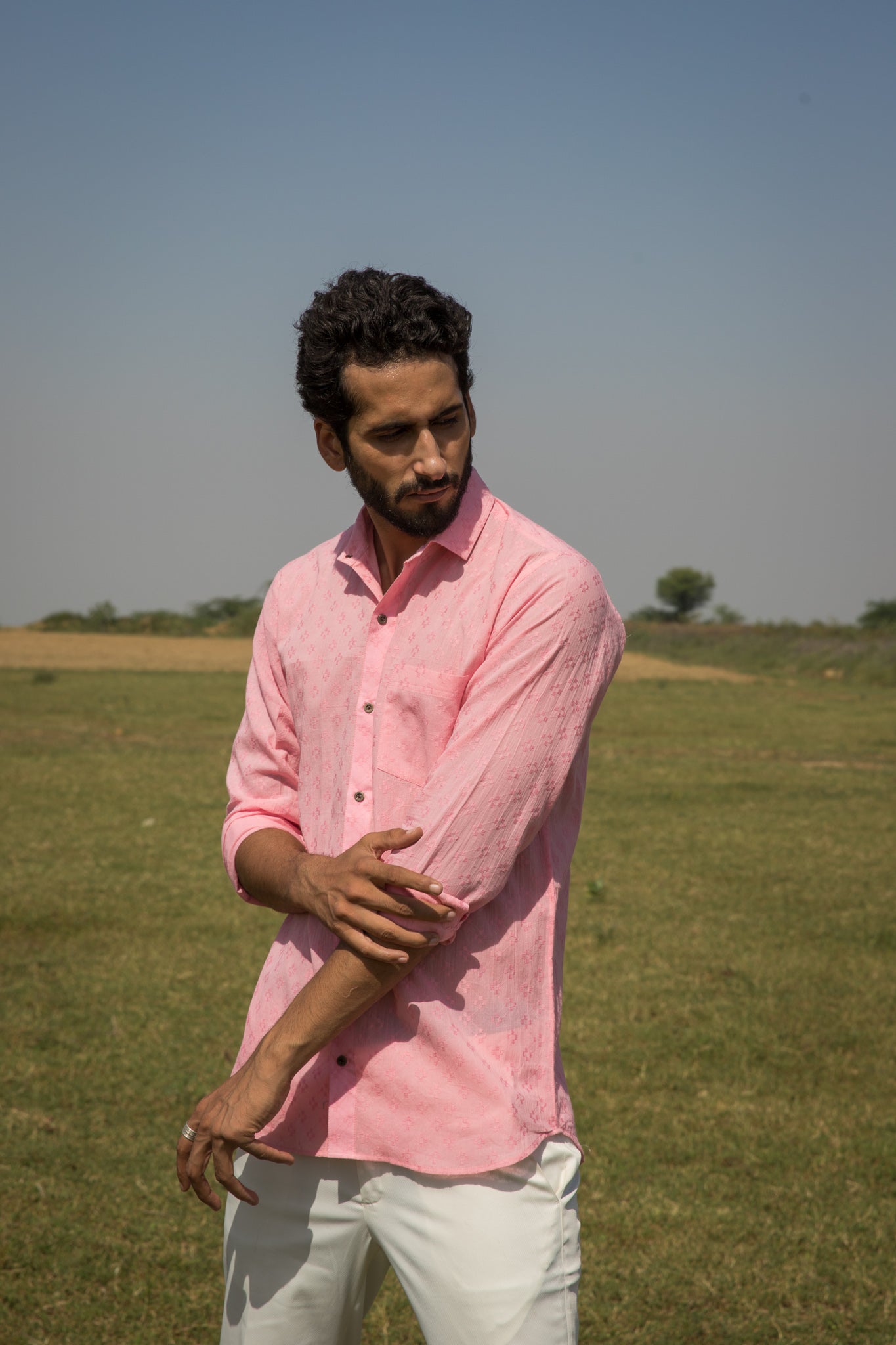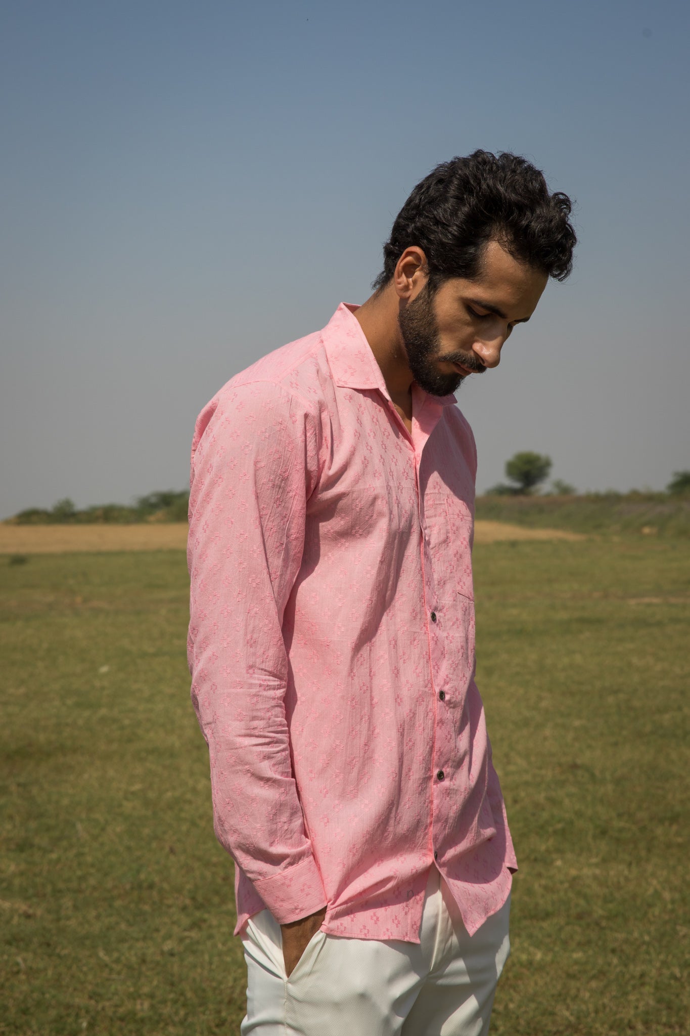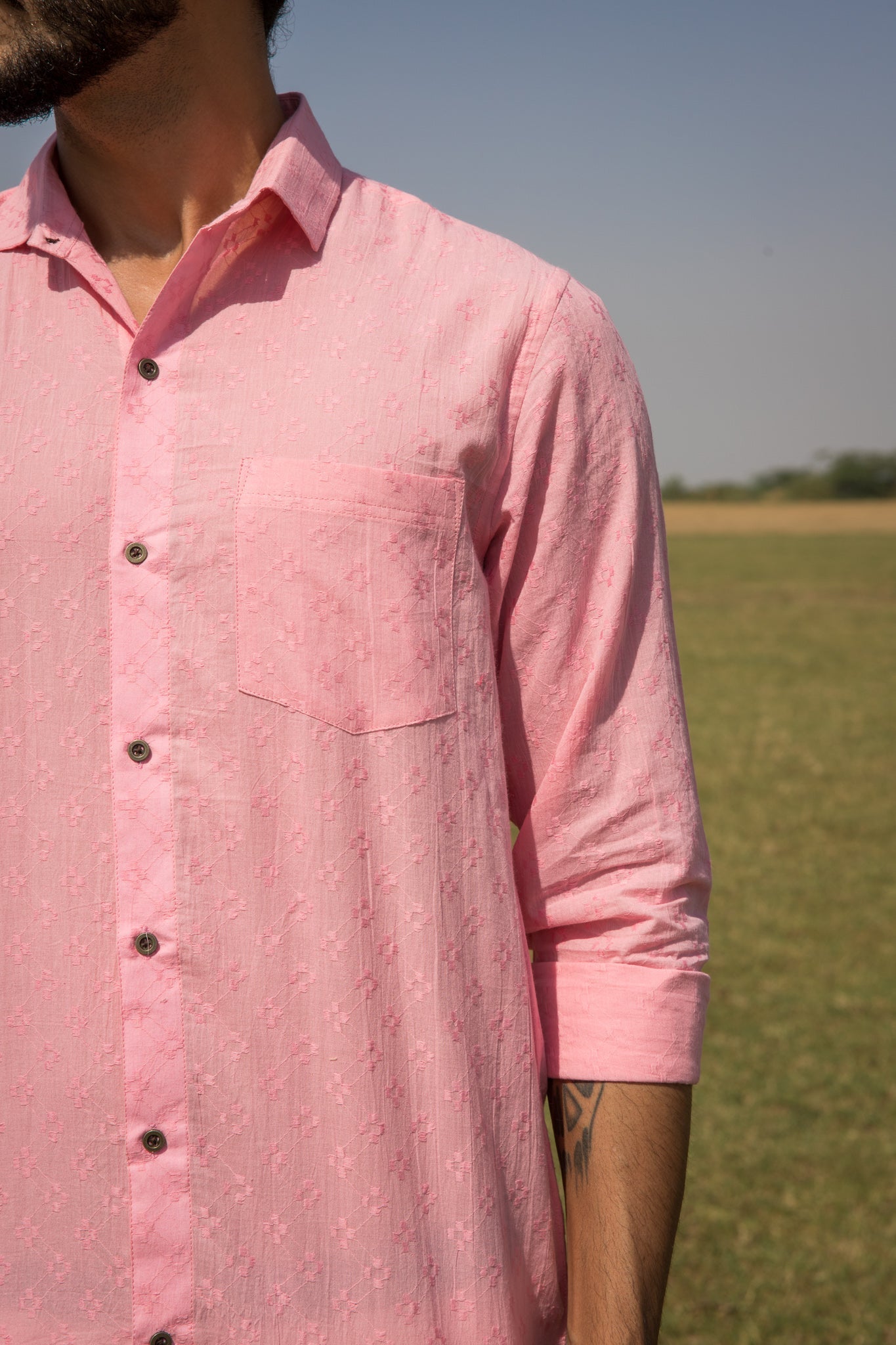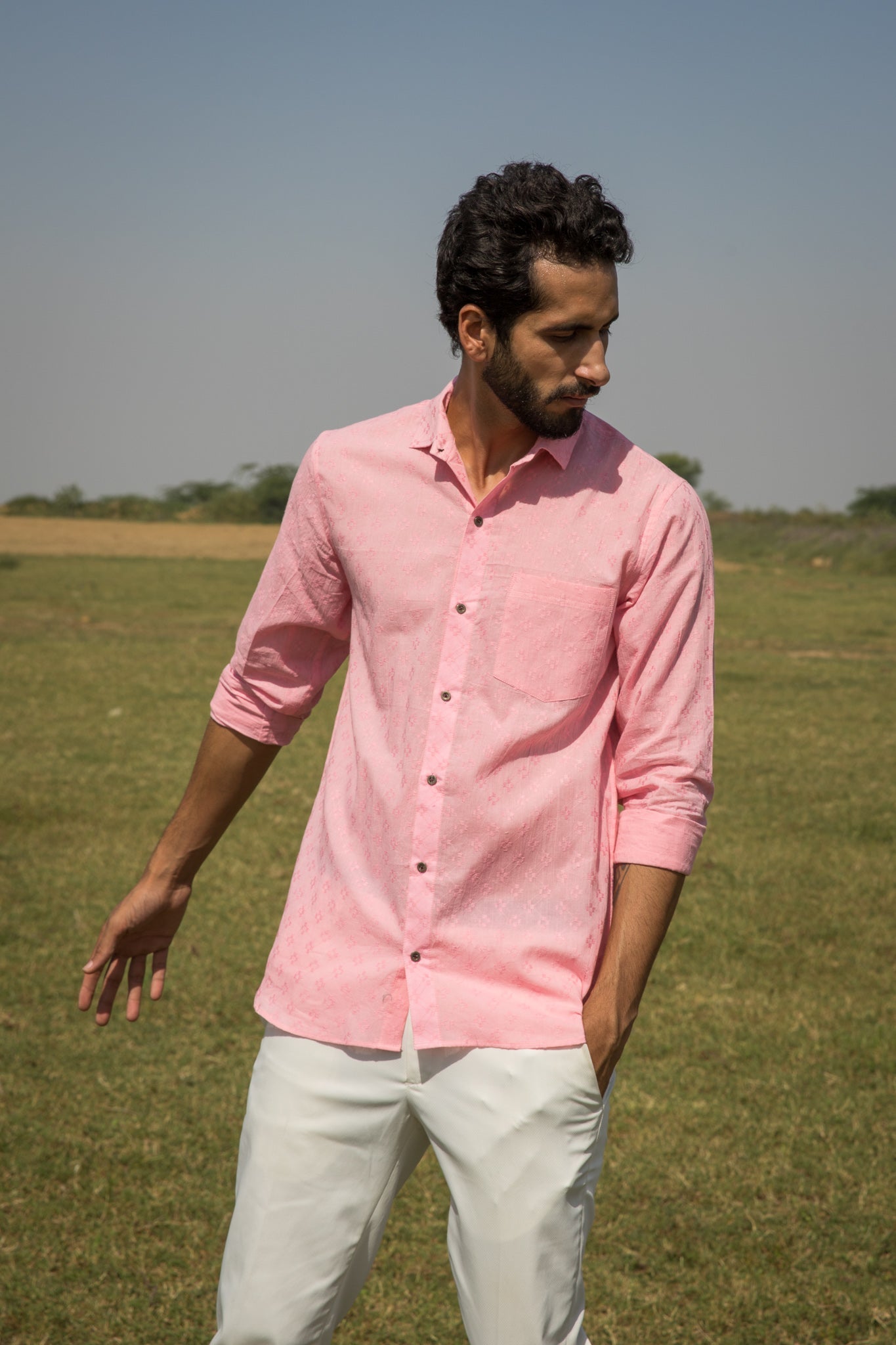 Our Erica shirt arrives on the scene in pink dyed dobby cotton.?ÿ
