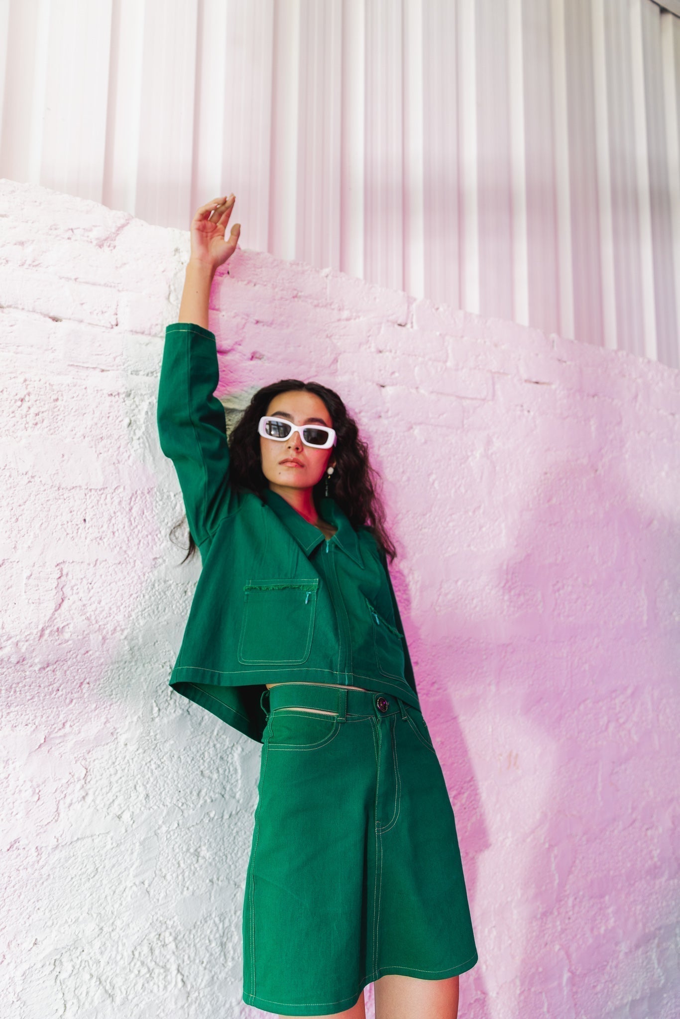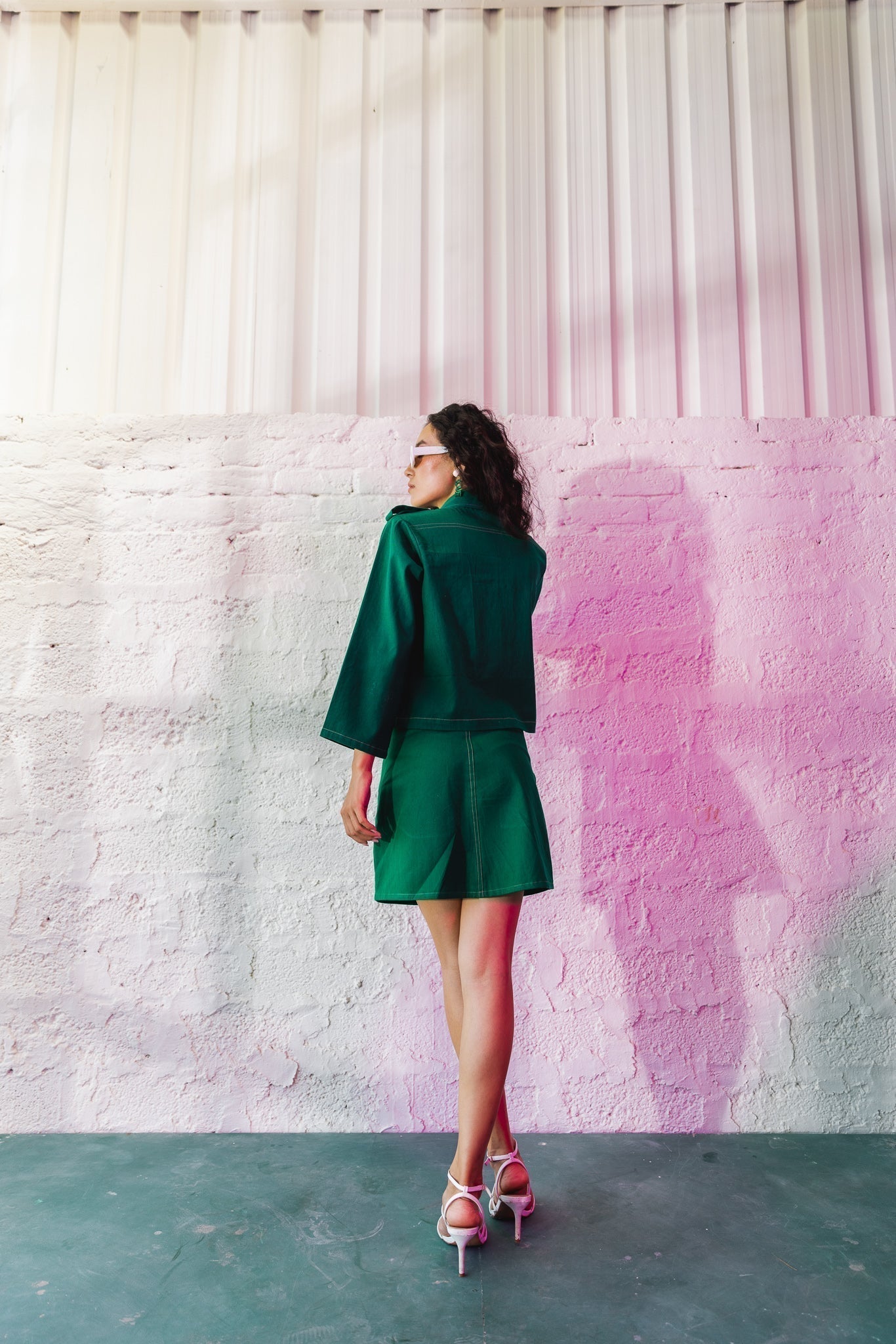 An effortless, easy-to-wear staple for your wardrobe featuring a relaxed fit top, and high-rise waist skirt with detailing dyed in the colour of the season green.?ÿ