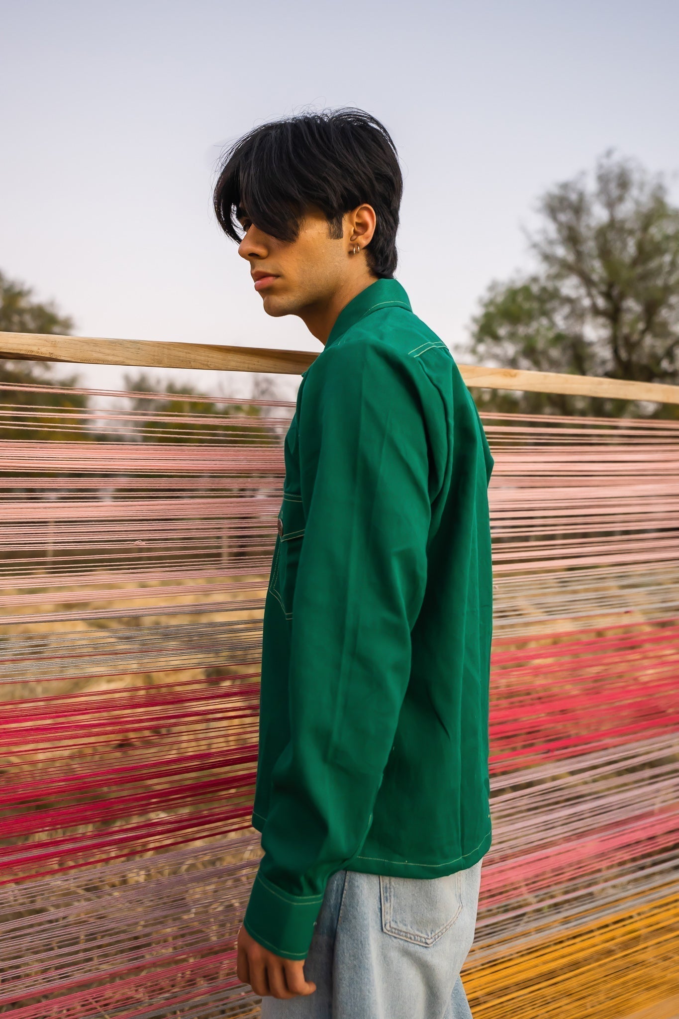 Hey cutayy!! This summer must-have twill shirt is dyed in the beautiful hue of green. Featuring full sleeves, detailed buttons.