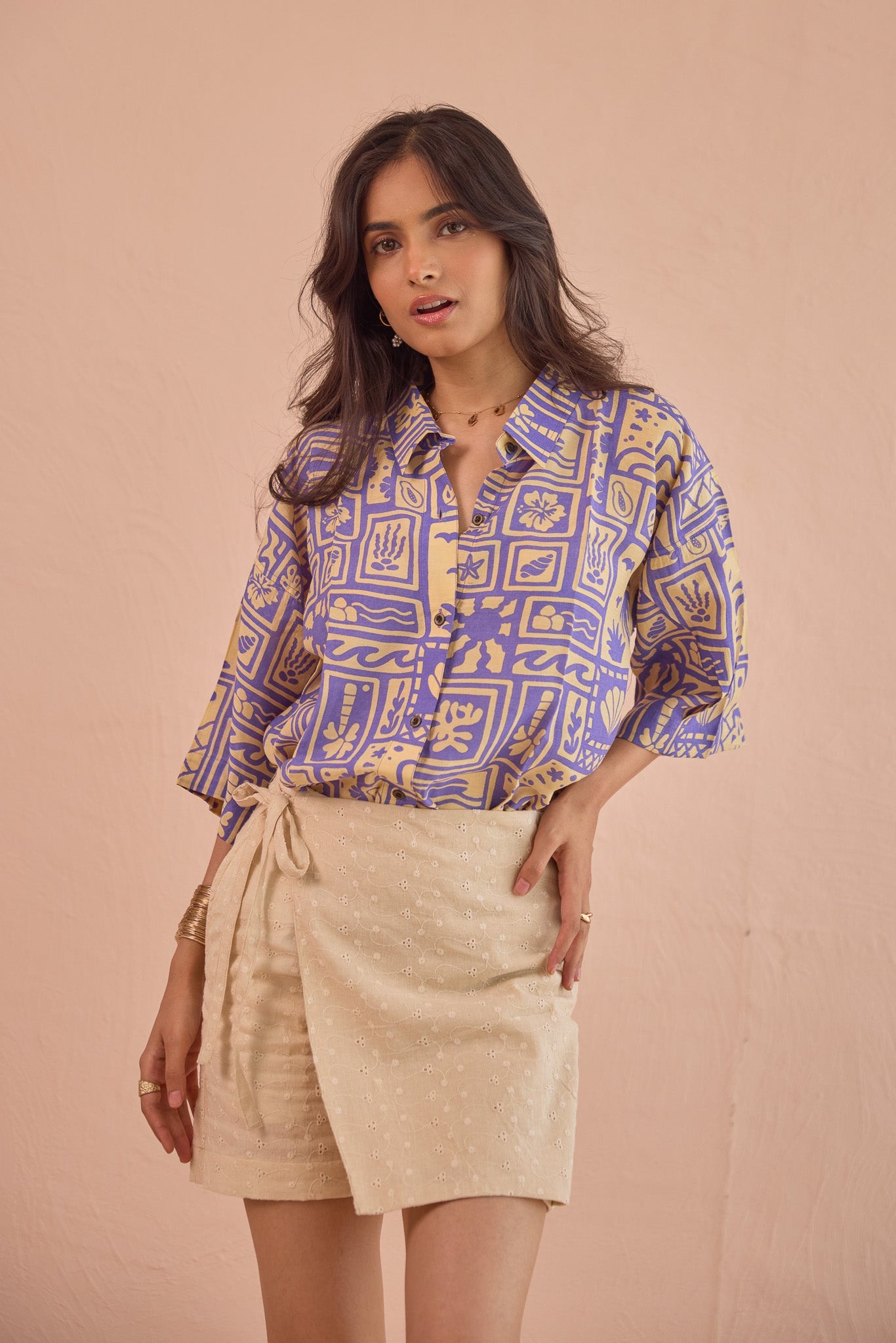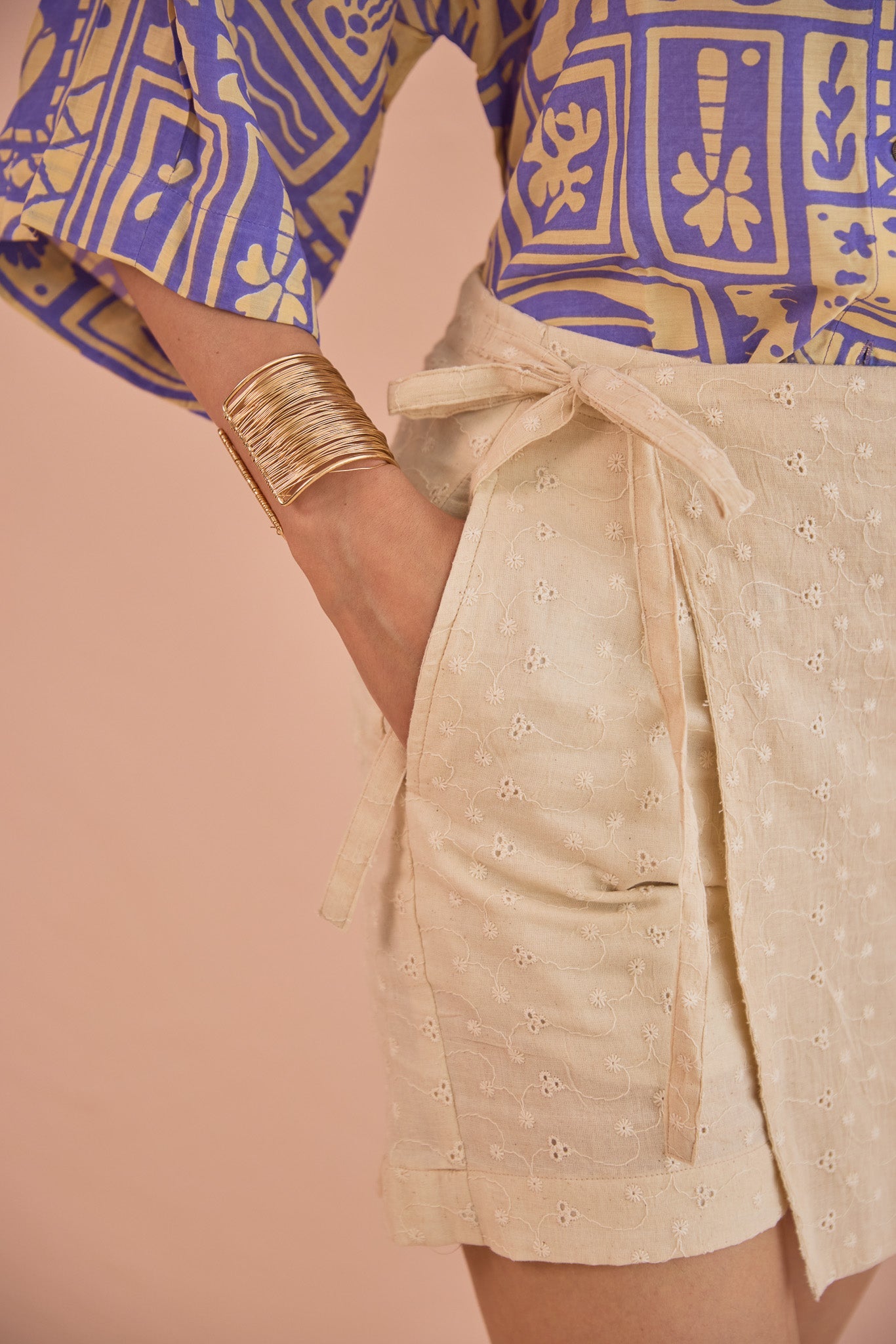 Let your outfit do the flirting. The La La Land Skort Co-ord is a full-on charm attack wrapped in luxurious muslin silk, topped with sunshine, sass, and a whole lot of style. This Blouse-and-Skort set is made for golden hour getaways, rooftop dates, and everything in between. The Skort provides comfort and the flowy blouse adds charm to it.?ÿ
