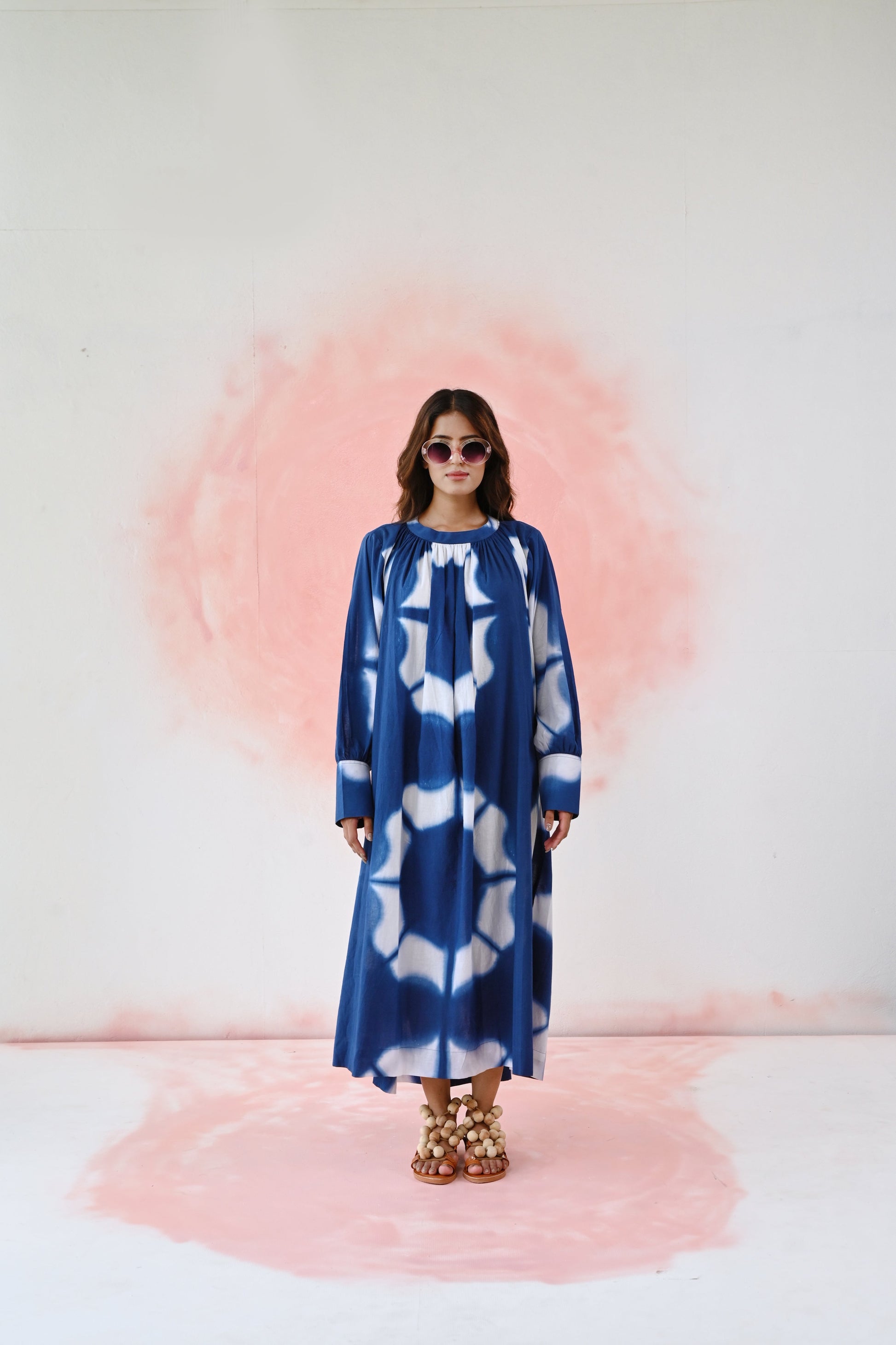 Make waves in this blue-hued beauty! Our Seabreeze Midi Dress offers a boxy fit with all the nautical vibes. Enjoy the clamp-dyed style in shades of the sea, plus added detailing on the sleeves for an extra splash of fun. Ready, set, sail!