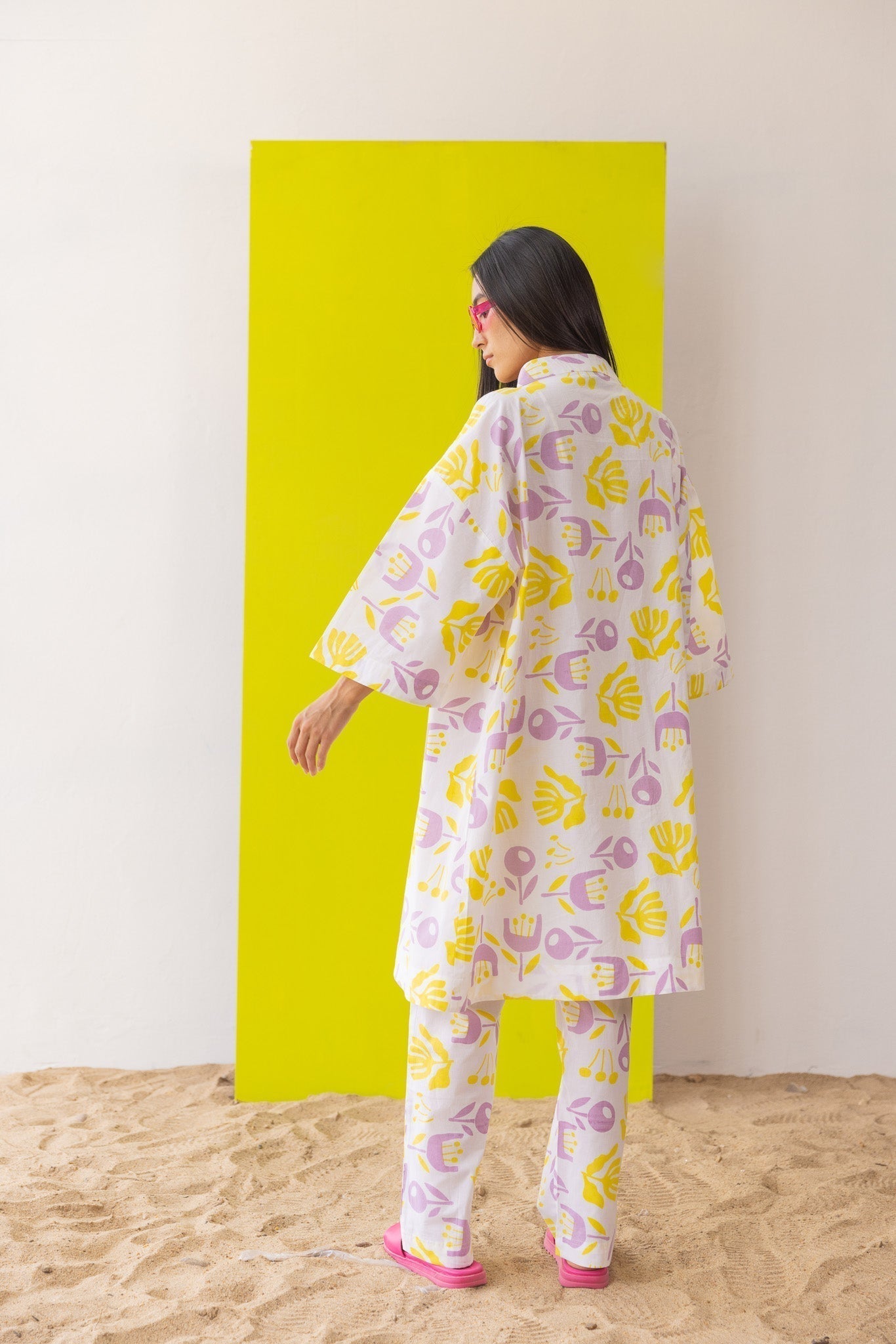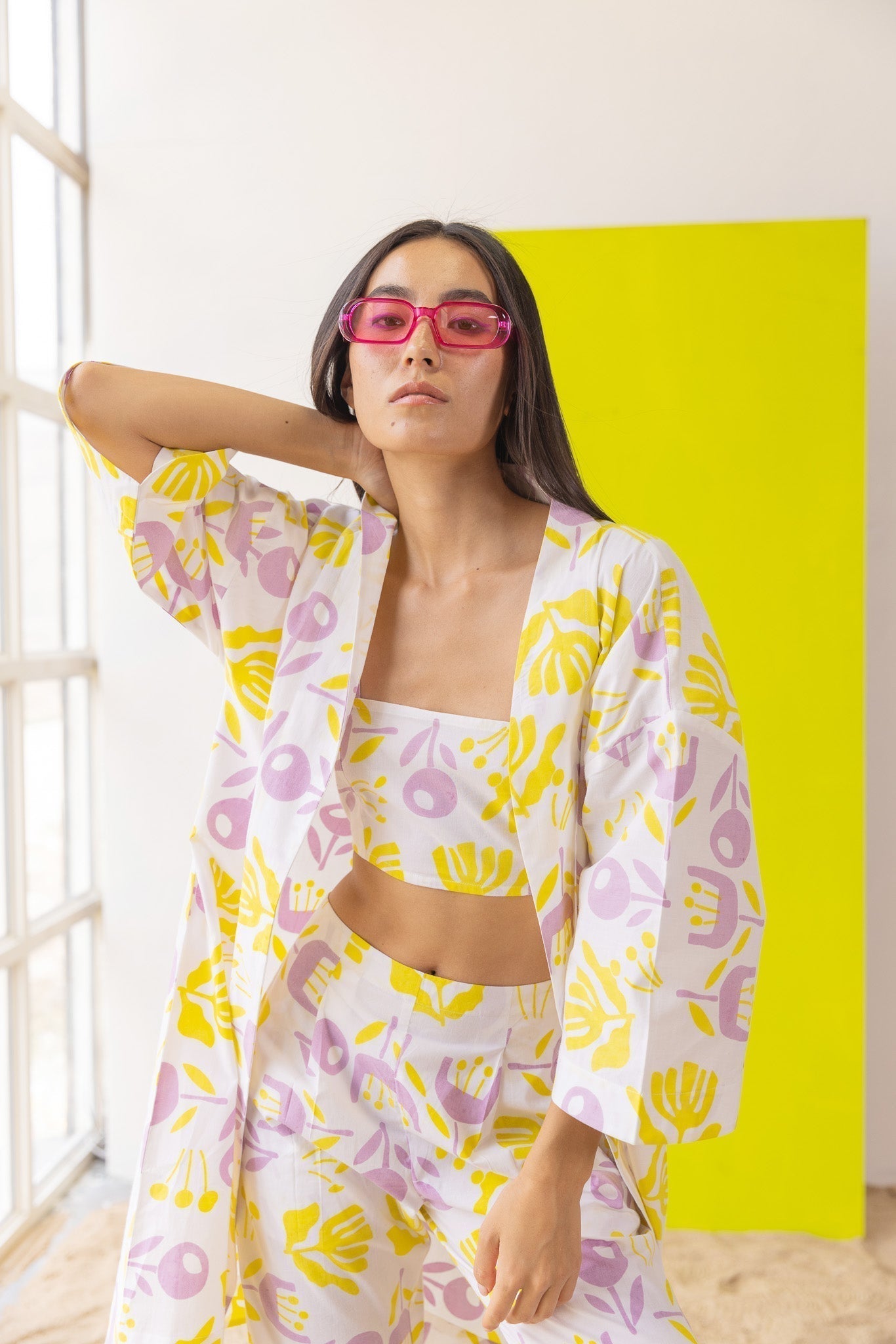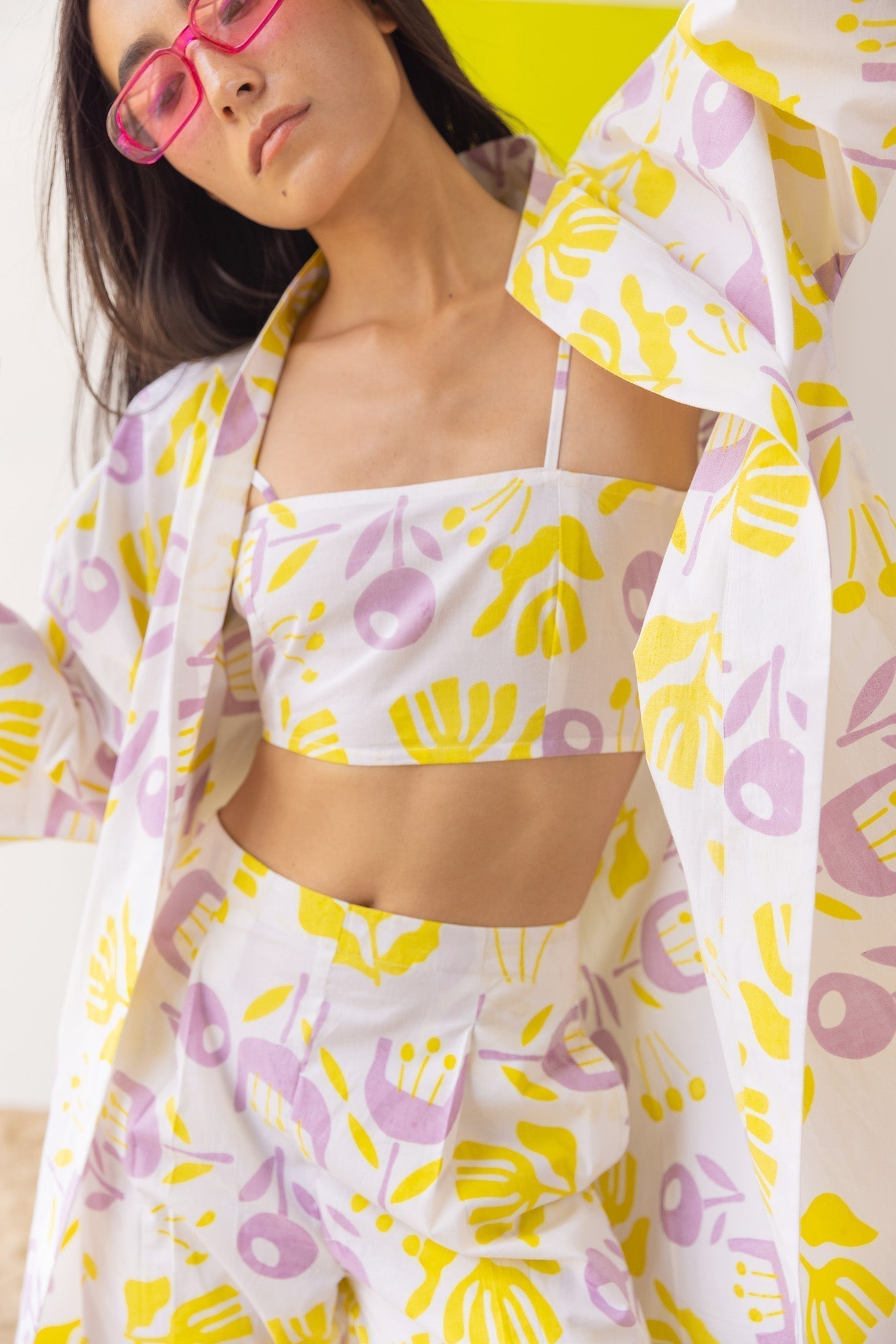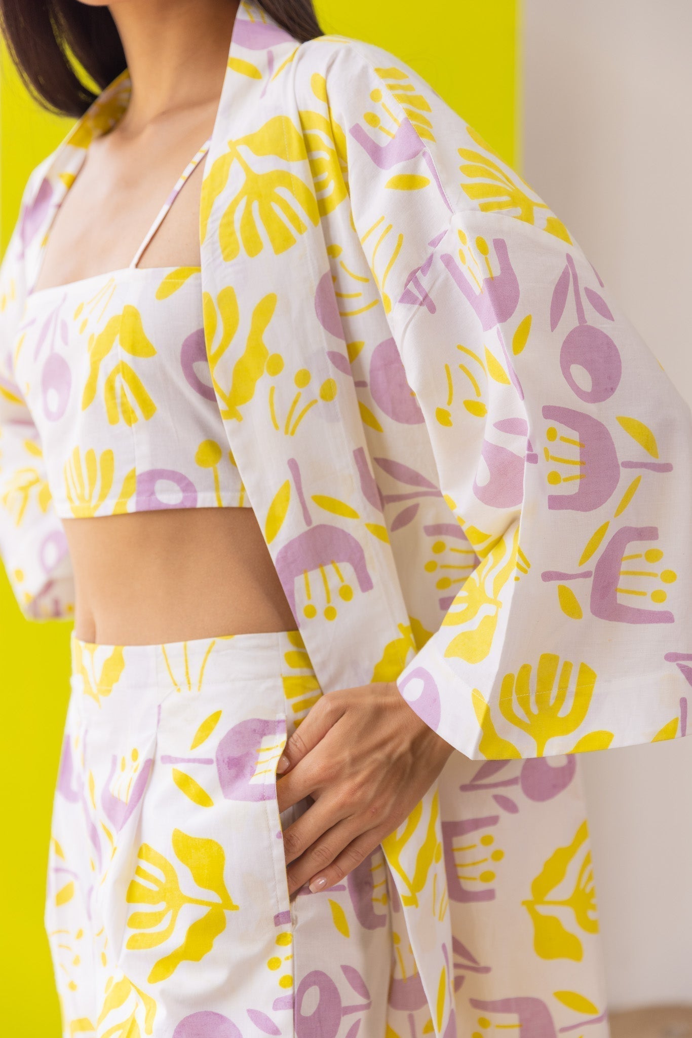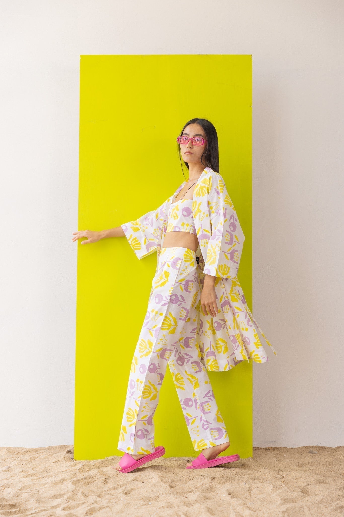 The eye grabbing co-ord set is here featuring speghetti top inside with smocking at the back, long jacket to give you the bold yet elegant style nook and trouser to complete the look in our exclusive new print.?ÿ