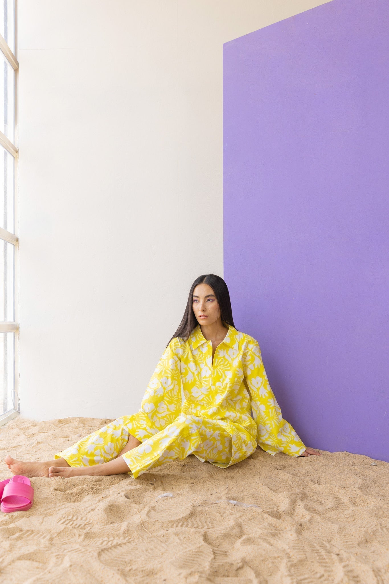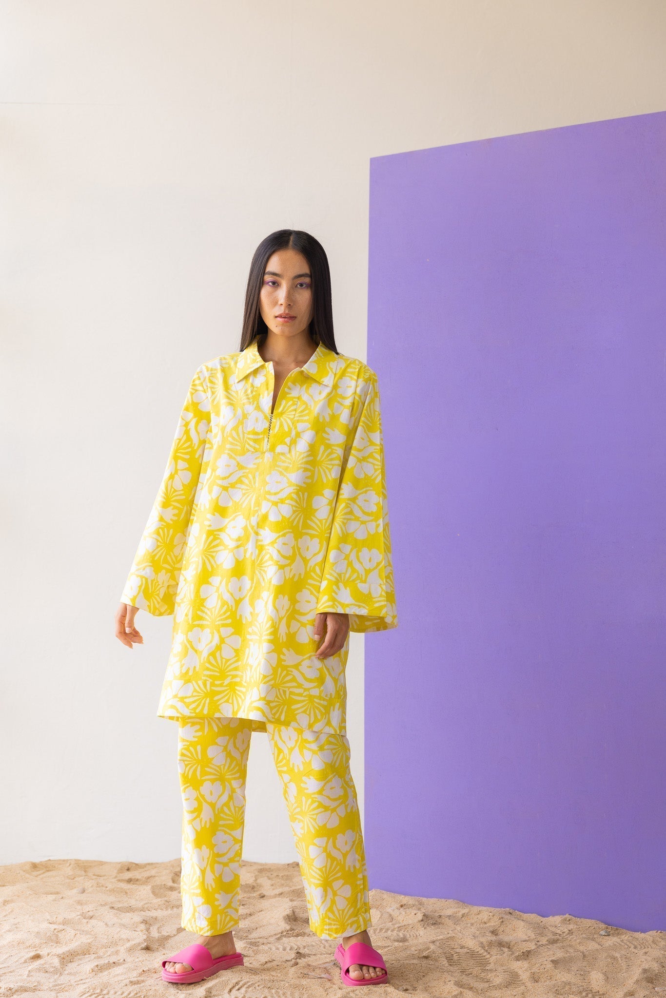 the co-ords are the thing this season, the summer favourite outfit is every eardrobe essential. Shop our Pinacolada Co-ord Set featuring a long top and a trouser for your all AM-PM situations and everything in between. The top features trumpet sleeves, cute neckline with cross detailing and a relaxed fit.?ÿ