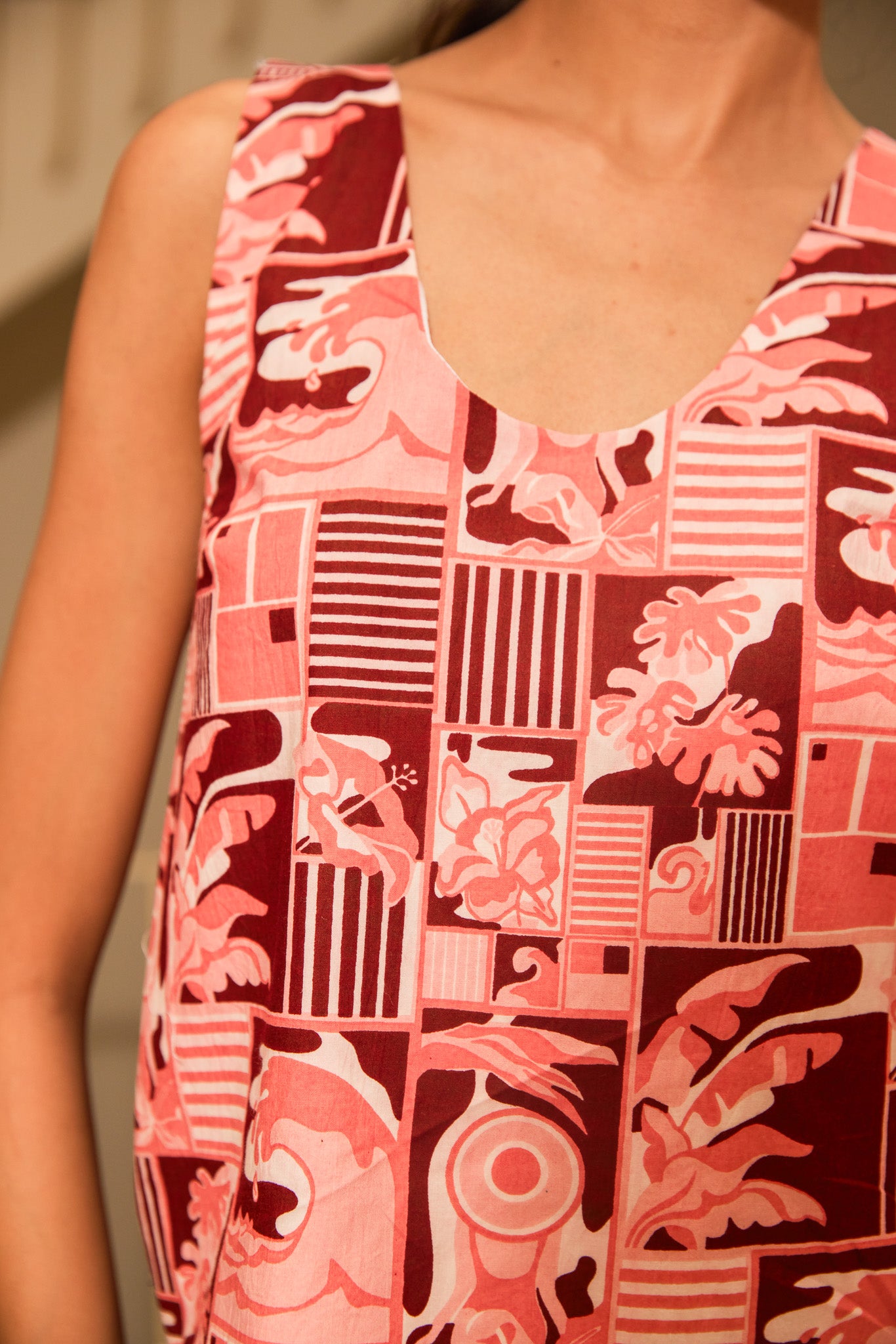 Cut in airy poplin, the Safar Top is a window to slow, wandering moments. Featuring a hand-drawn conversational print in earthy hues, it mirrors glimpses of everyday life ƒ?? soft winds, still thoughts, open roads. The sleeveless silhouette with a gently curved neckline offers room to move, pause, and begin again. Meant to be worn with ease, again and again.