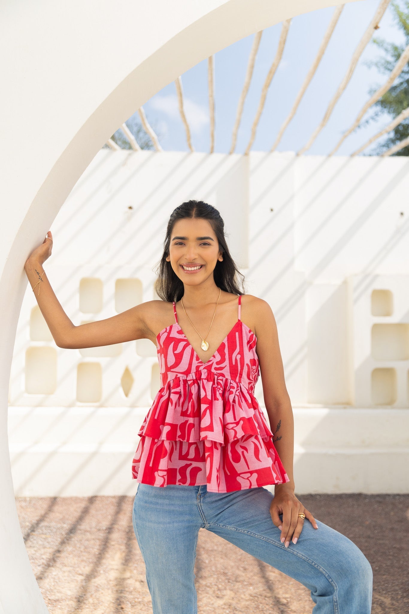 Meet the ultimate cotton top thatƒ??s as fun, fresh, and flirty as your summer plans! ???? Hand-screen printed in playful hues, itƒ??s giving vacay mode, brunch dates, and all the sunshine vibes. Made from breathable cotton, this top keeps you cool while looking effortlessly stylish. Whether youƒ??re pairing it with denim, skirts, or layering it upƒ??this oneƒ??s got your back for every cute moment! ƒ??