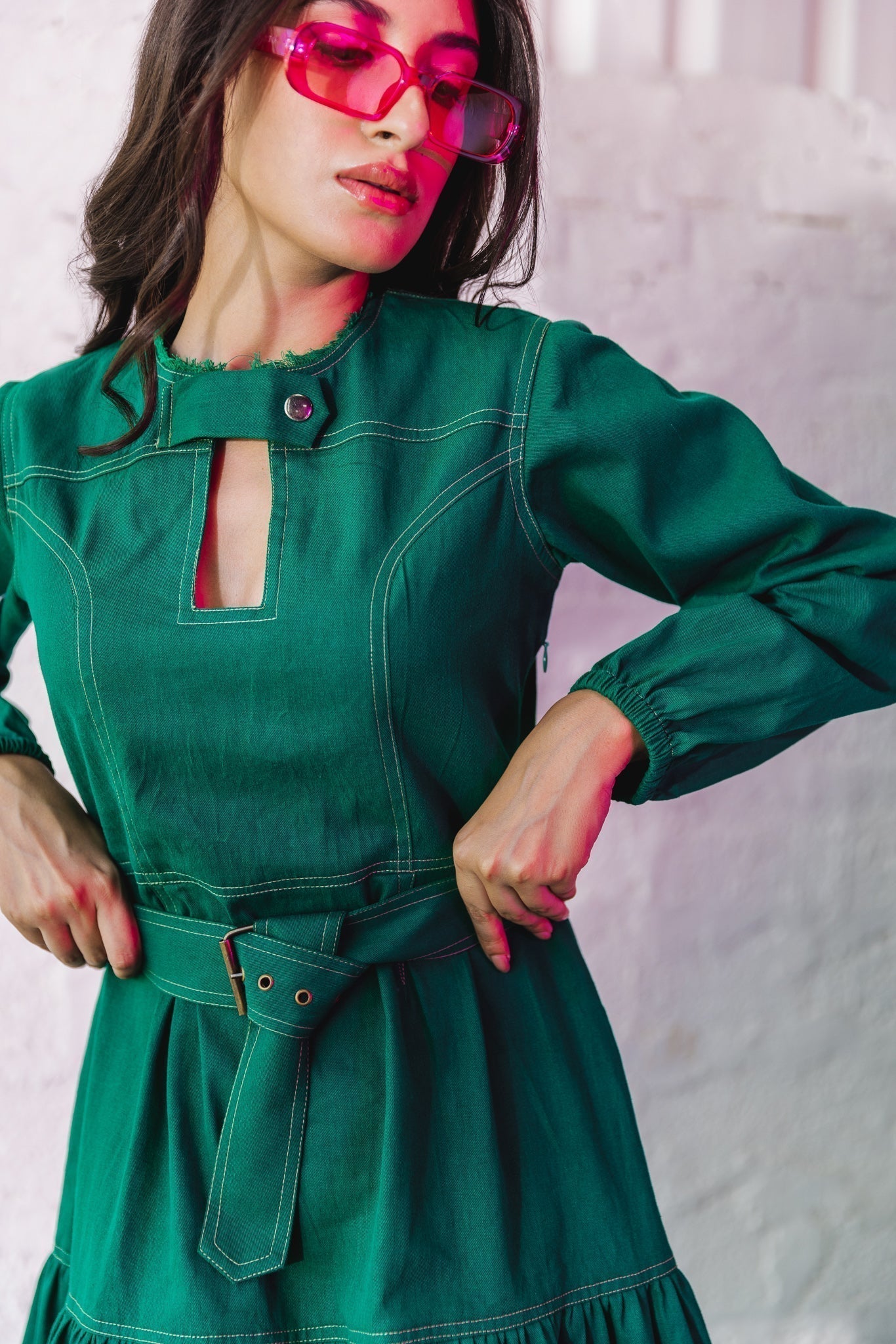 The effortless Gemma Mini Dress will be a wardrobe staple for seasons to come. Offering an understated neckline, playful frill hemline and pair it with a belt and you're good to go.?ÿ