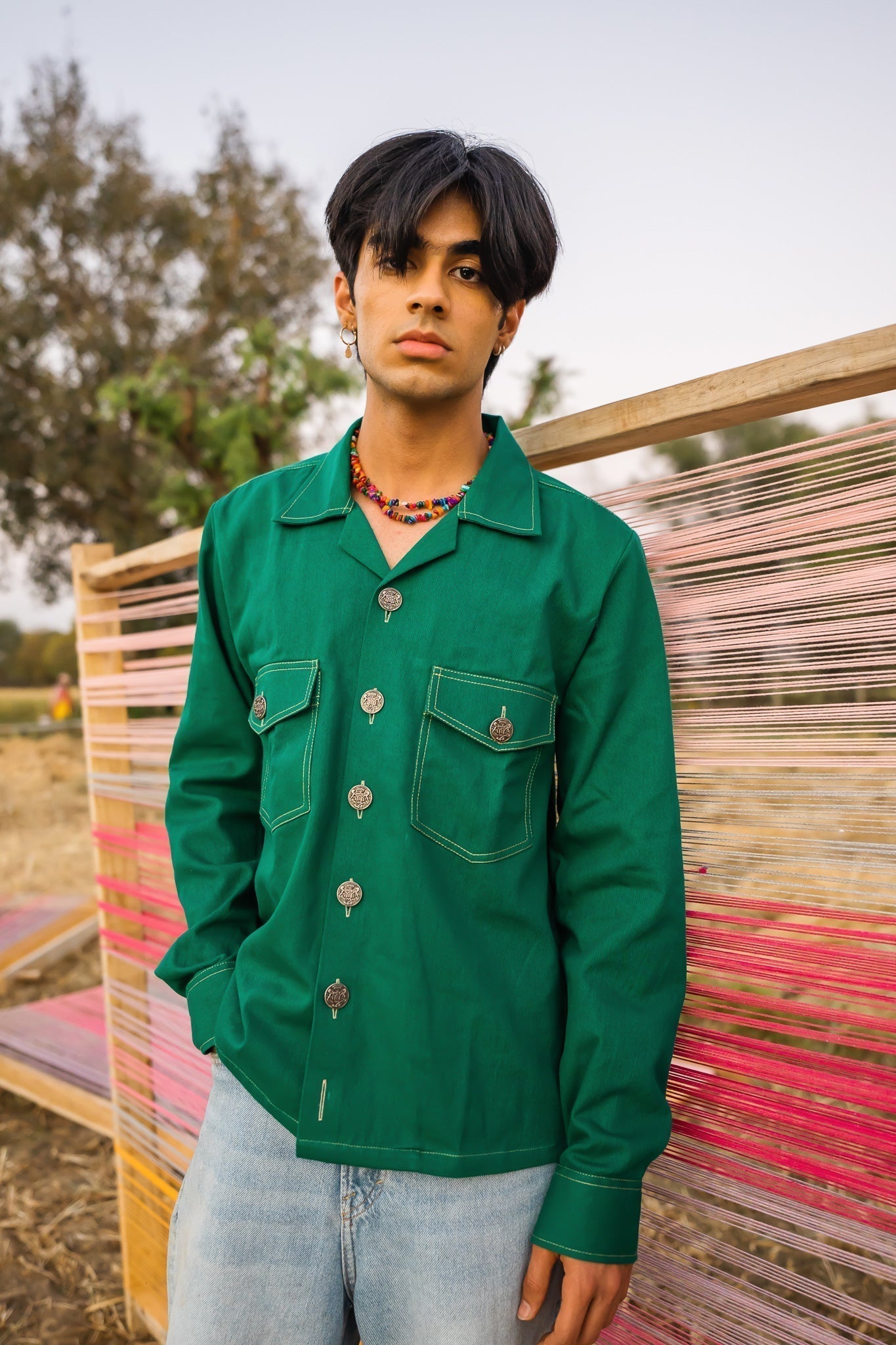Hey cutayy!! This summer must-have twill shirt is dyed in the beautiful hue of green. Featuring full sleeves, detailed buttons.