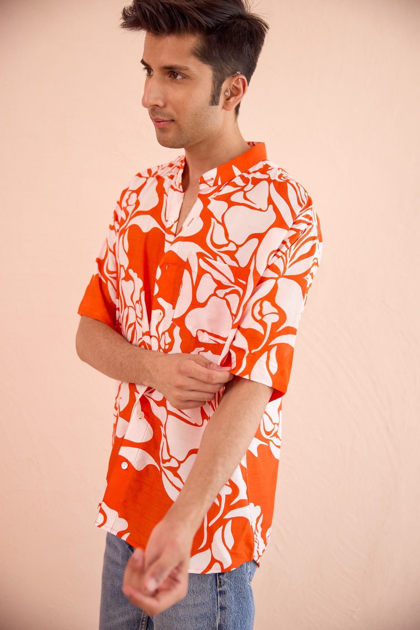 Bask in the warm glow of our Golden Hour Shirt, crafted from luxurious orange muslin silk that captures the magic of sunset. Part of our exclusive Bae Collection, this vibrant piece is designed for those special moments with your favorite person. Step out together and turn heads in this playful, eye-catching shirt that radiates positive energy!